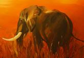 elefant in der savanne acryl-ölkreide-mix auf leinen