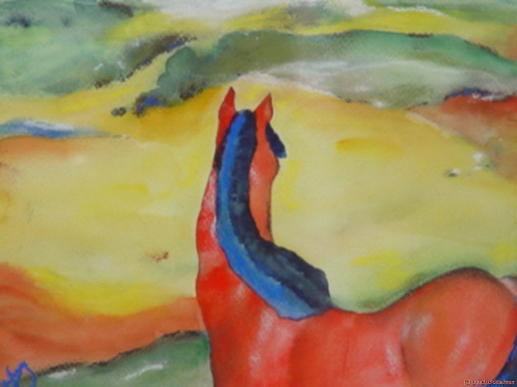 | marc pferd in der landschaft | marc zwei katzen, blau und gelb | marc die kleinen gelben pferde |