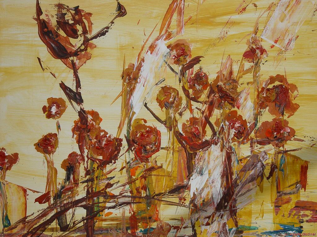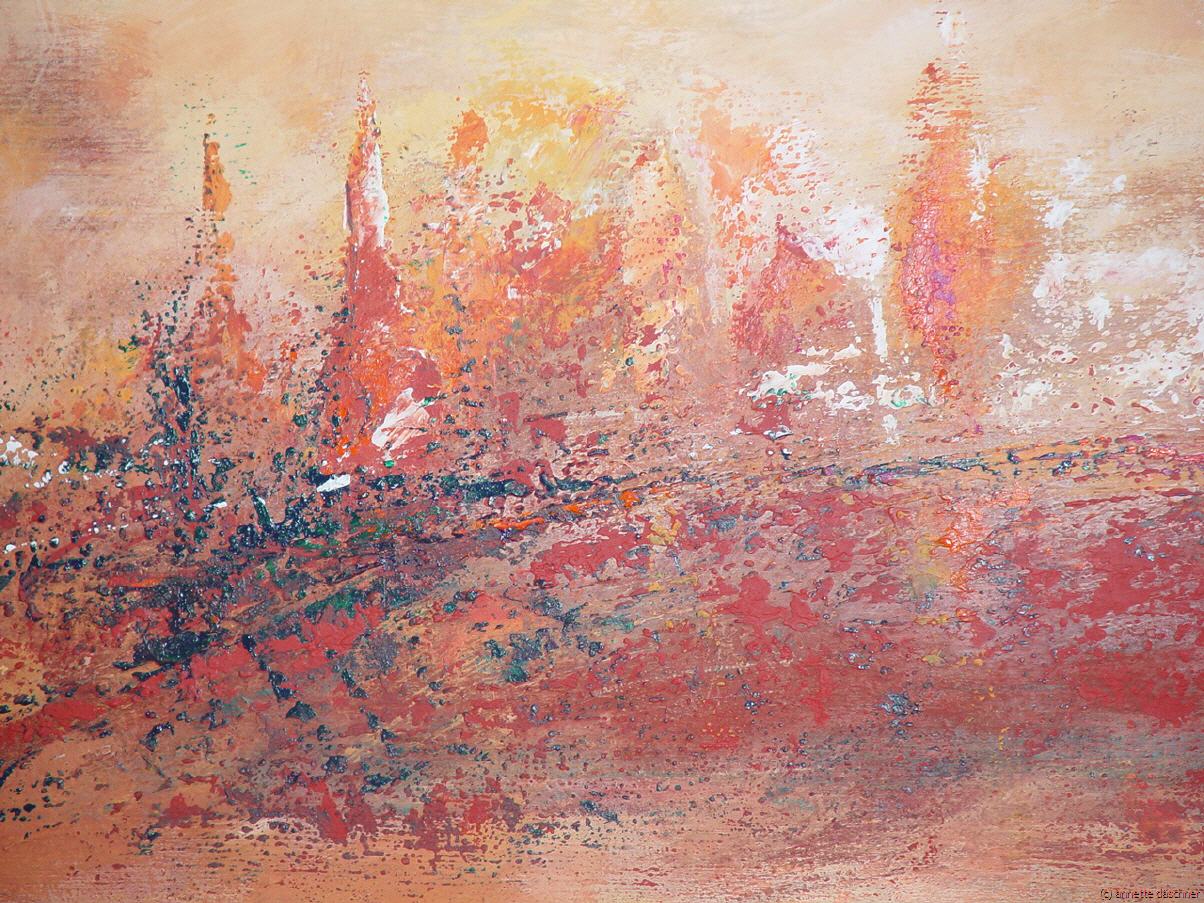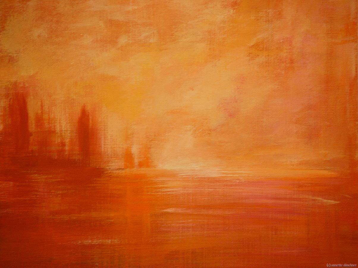 | abendsonne acryl auf leinen | südwind acryl-öl-mix auf leinen | innenleben acryl-materialmix auf holz |