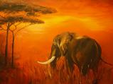 elefant in der savanne acryl-ölkreide-mix auf leinen
